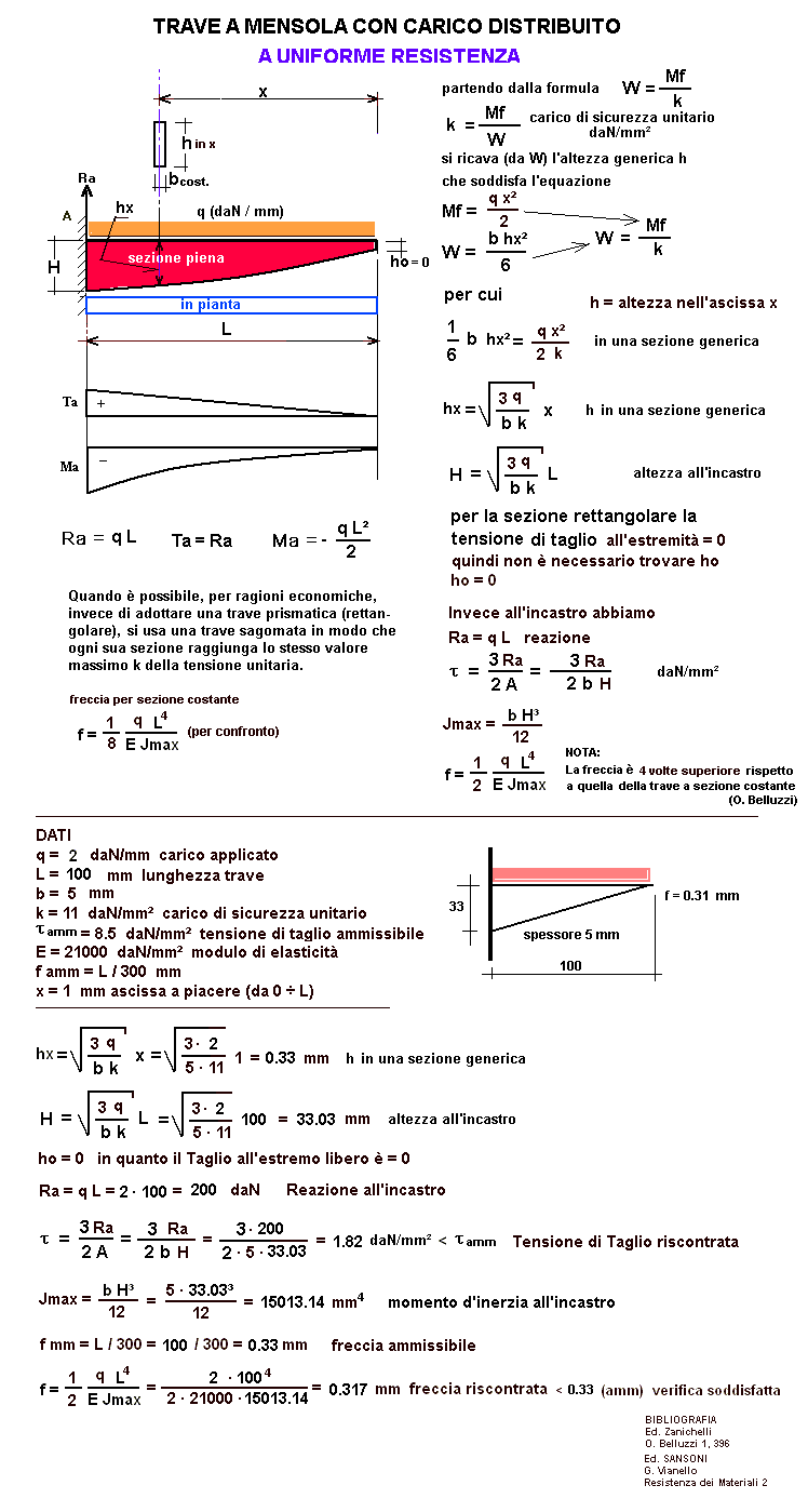 CALCOLO MENSOLA CON UNIFORME RESISTENZA E CARICO DISTRIBUITO