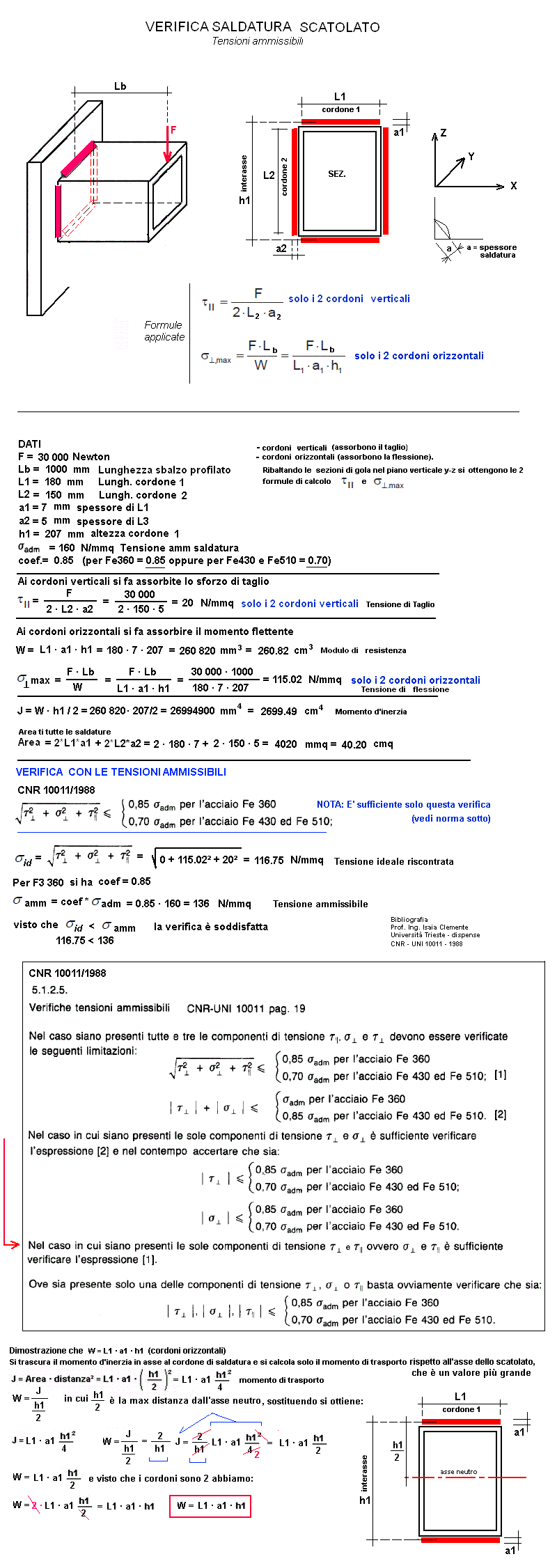 J = momento d'inerzia saldatura verticale