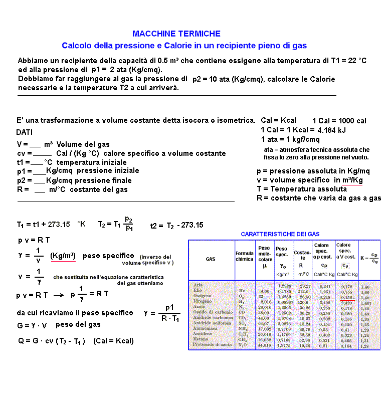 - Calcolo pressione e Kcal in un recipiente pieno di gas -
