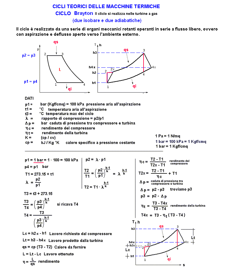 calcolo ciclo Turbine a gas teorico - Ciclo Brayton-Joule - MACCHINE TERMICHE -