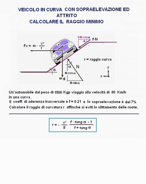 Calcolo r raggio di curvatura con attrito e sopraelevazione - forza centrifuga