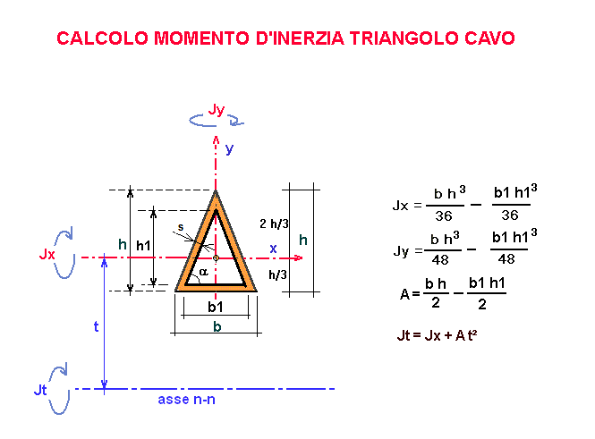 CALCOLO MOMENTO D'INERZIA PROFILO A TRIANGOLO CAVO