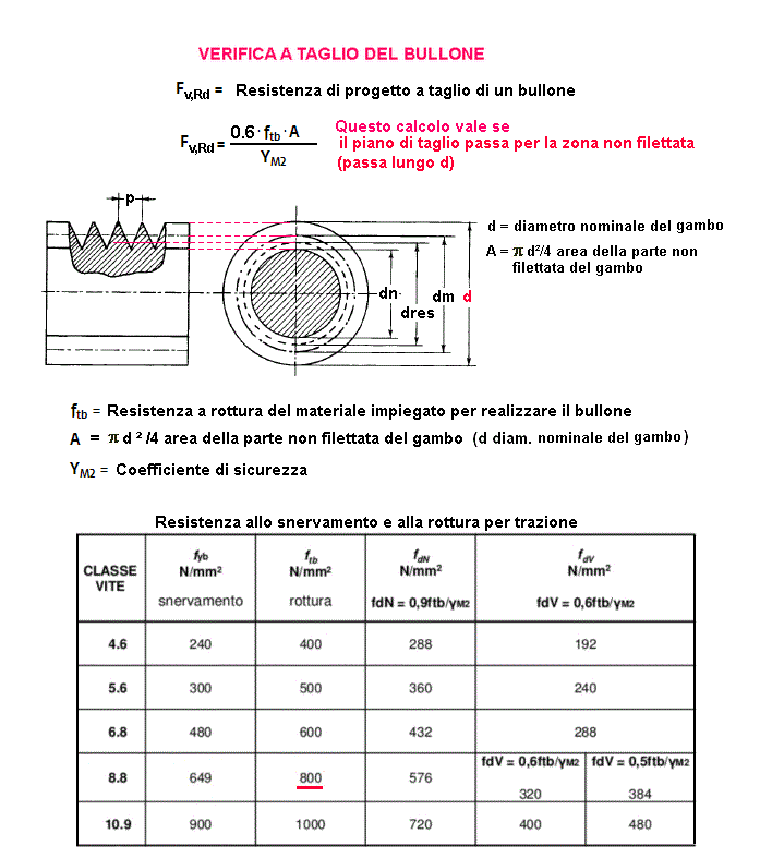 = Resistenza a rottura del materiale impiegato per realizzare del bullone