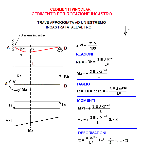 Cedimento per rotazione incastro di trave incastrata e appoggiata