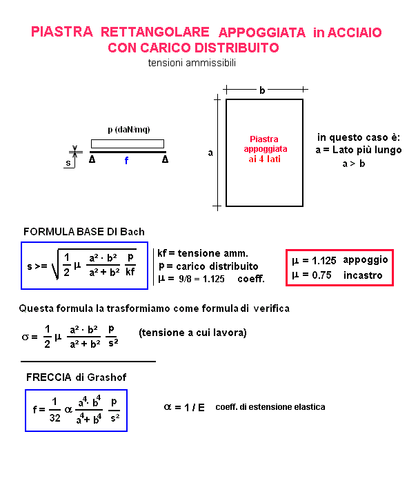 Piastra rettangolare appoggiata in acciaio, con carico distribuito- verifica spessore e freccia