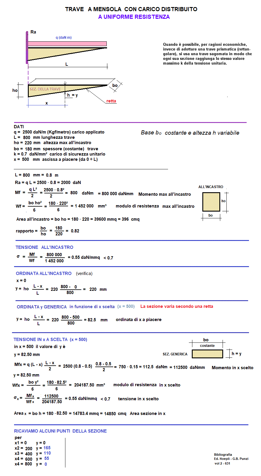 CALCOLO TRAVE A MENSOLA CON CARICO DISTRIBUITO