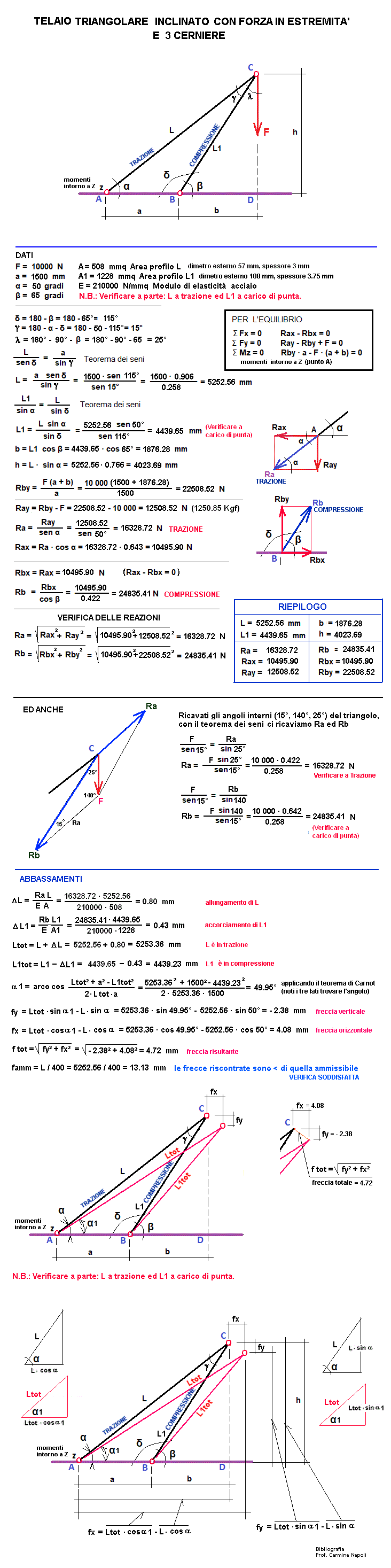 Telaio triangolare inclinato con 3 cerniere e forza in sommità,